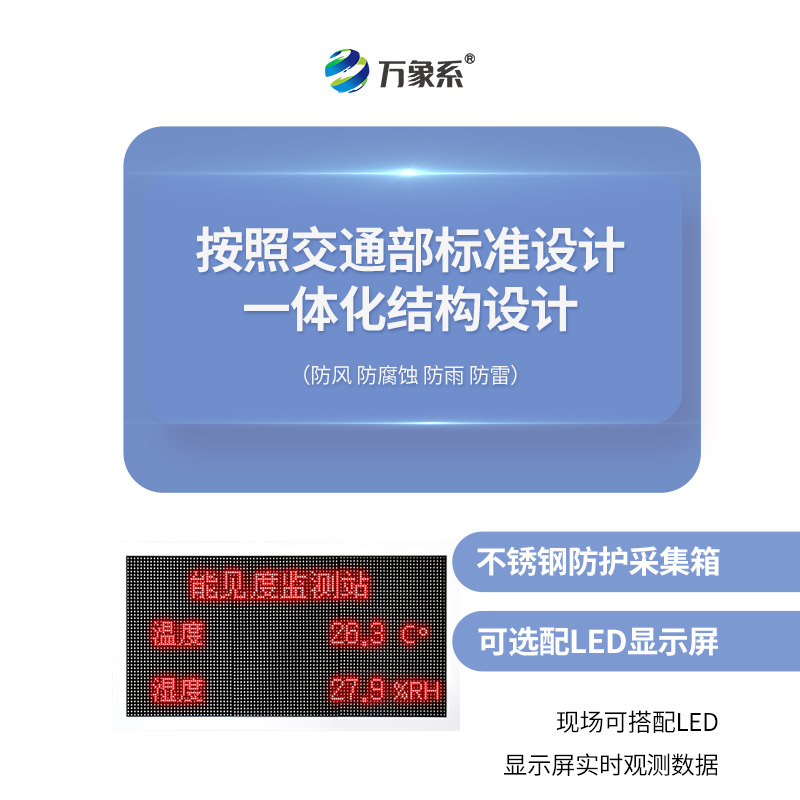 10km能見度監測站又稱能見度監測站,能見度監測系統,10km能見度監測站不僅能實時監測道路能見度情況還可以監測溫度、濕度、風速、風向、大氣壓力、壓電雨量等氣象要素,在惡劣氣象下及時發出警示信息